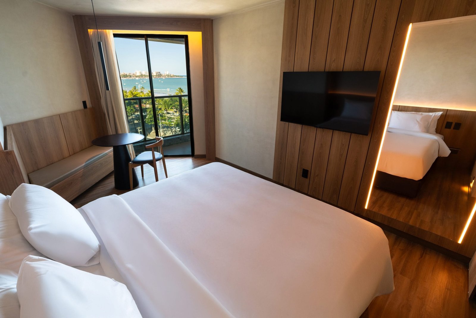 Hotel 4 estrelas moderno e acolhedor, premiado pelo Tripadvisor em 2024, a poucos passos da Praia de Pajuçara.